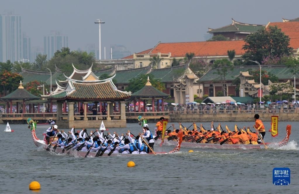 除賽事之外,本屆龍舟文化節(jié)以“兩岸一家過端午,百年學(xué)村賽龍舟”為主題,融合龍舟文化、學(xué)村文化、閩南文化,還同期舉辦海峽兩岸(集美)端午文化論壇、集美(端午)詩歌節(jié)等活動。   新華社記者 姜克紅 攝