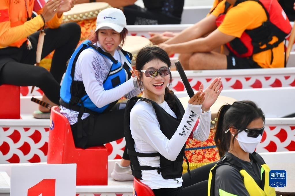 6月3日,來自臺灣的張宇?。ㄓ遥┦堑谒拇蝸韰⒓蛹例堉圪?,對比賽場地集美龍舟池“既熟悉,又親切”。   新華社記者 付敏 攝