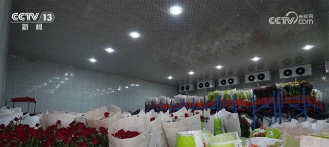 安寧諾斯沃德花卉產(chǎn)業(yè)有限公司副總經(jīng)理 王子西:這個(gè)溫度是一個(gè)4℃—6℃的冷環(huán)境,鮮花如果帶有田間熱,它的開(kāi)放速度是非常快的,所以在這個(gè)車(chē)間里,通過(guò)這樣的冷環(huán)境減緩它的開(kāi)放速度,叫作休眠,讓我們的鮮花有更多的時(shí)間留到下一個(gè)環(huán)節(jié)進(jìn)行加工、物流和處理。