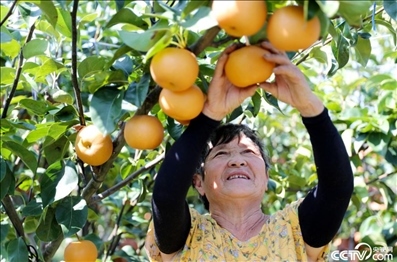 近日,山東省萊西市秋月梨迎來收獲期,農(nóng)民們?cè)谔镩g地頭忙著采摘、分揀、裝箱、打包,銷往全國(guó)各地。2022年,當(dāng)?shù)厍镌吕娣N植面積達(dá)3.1萬畝,銷售量8.87萬噸。