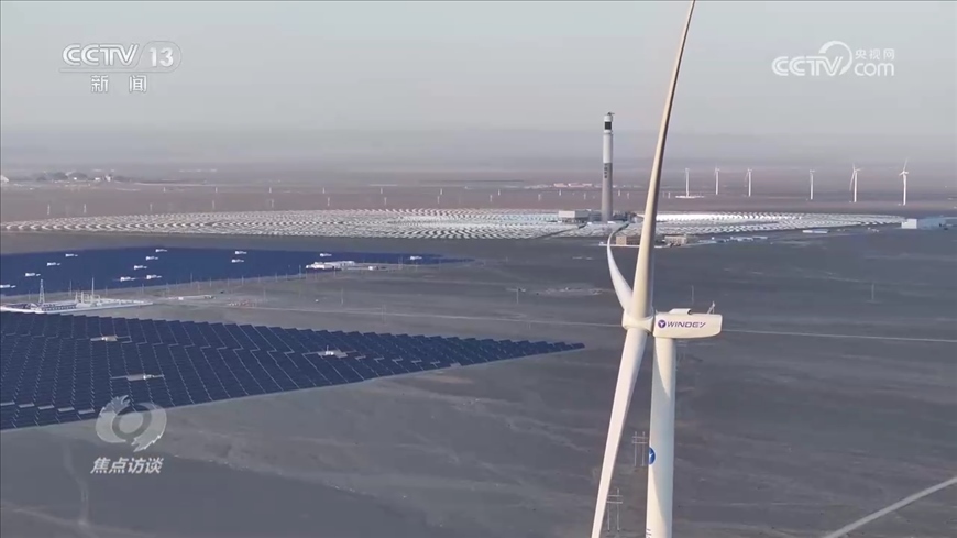 新疆生產(chǎn)建設(shè)兵團(tuán)第十三師新星市發(fā)改委主任龍剛:“我們新星市光伏和風(fēng)電的裝機(jī)總?cè)萘窟_(dá)到了240萬(wàn)千瓦,2022年風(fēng)電和光伏總發(fā)電量是38億度電,相當(dāng)于減排二氧化碳300萬(wàn)噸左右?!?/p>