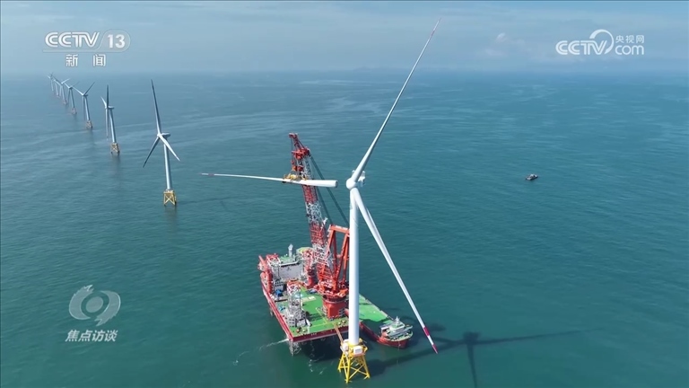 明陽(yáng)集團(tuán)黨委書(shū)記、董事長(zhǎng)張傳衛(wèi):“18兆瓦的風(fēng)機(jī)葉輪直徑可以達(dá)到290米,它轉(zhuǎn)一圈就可以發(fā)到60度電,一年下來(lái)可以發(fā)1億度電,覆蓋10萬(wàn)個(gè)家庭用電,減少7萬(wàn)噸的二氧化碳排放?!?/p>