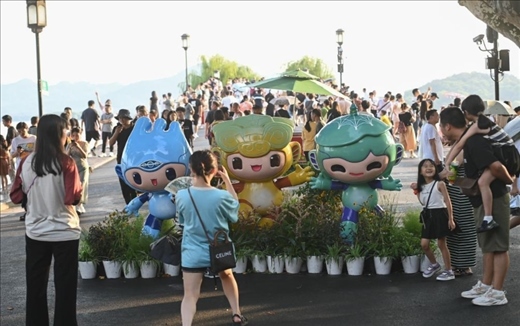 進(jìn)入“亞運時刻”的杭州,地鐵公交換上“吉祥物限定皮膚”,剪紙、銅雕、竹編等民間版“江南憶”層出不窮……這座彌漫著濃濃亞運氛圍的煥新古城,正通過被網(wǎng)友昵稱為“三小只”的吉祥物,向八方賓朋傳遞快樂與友愛。