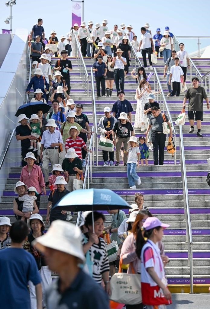 “我們還在觀眾組織上采取了一些柔性措施?!泵檎f,比如,針對比賽時間較長的足球、籃球、網(wǎng)球、擊劍等項目,在上下場交接過程中出現(xiàn)觀眾流動的問題,及時調(diào)整入場政策,以確保觀眾可以二次入場。