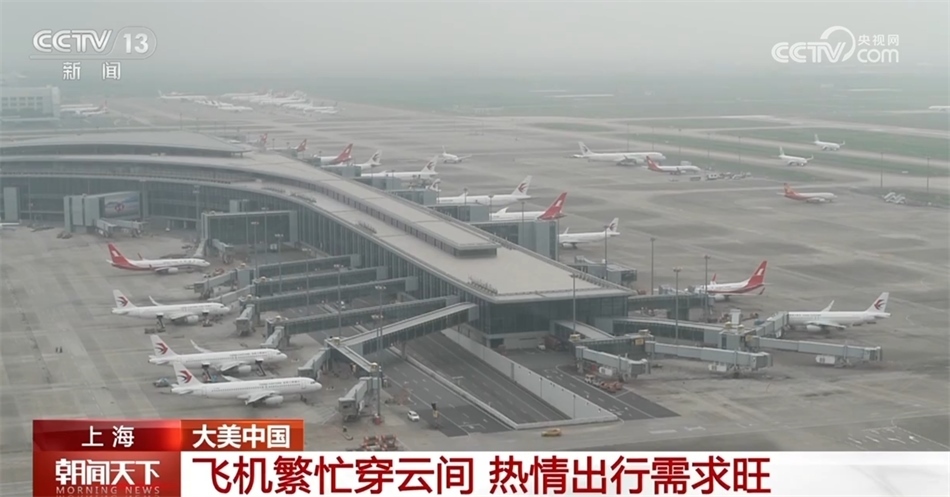 現(xiàn)在您看到的是上海浦東國際機(jī)場,每天早上的8點(diǎn)到9點(diǎn)是航班進(jìn)出港高峰,平均約42秒就有一個(gè)航班起降。今年中秋、國慶“雙節(jié)”疊加,出行需求旺盛,8天假期,預(yù)計(jì)浦東機(jī)場航班量1.1萬架次,客流量158.5萬人次。