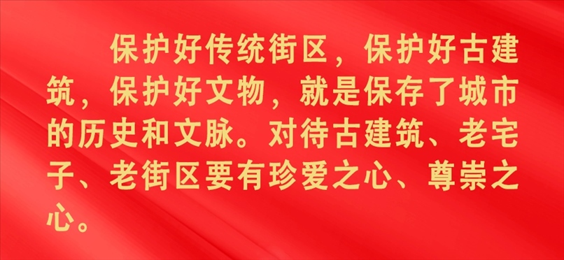 歷史文化是城市的靈魂,一個城市的歷史遺跡、文化古跡、人文底蘊,是城市生命的一部分。習近平總書記多次考察調研老城建筑和文化街區(qū),對傳承保護城市歷史文化遺產(chǎn)作出重要指示。