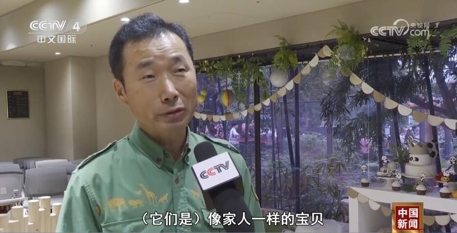 愛寶樂園熊貓館飼養(yǎng)員 姜哲遠(yuǎn):我們的“寶”家族真的有家人的感覺,首先愛寶、樂寶、福寶的名字都是有含義的,就像它們名字的意思一樣。它們是可愛,又給我?guī)砜鞓返膶毼?、可愛的寶物,還有幸福的寶物。對(duì)我來說,就像它們的名字一樣,(它們是)像家人一樣的寶貝。