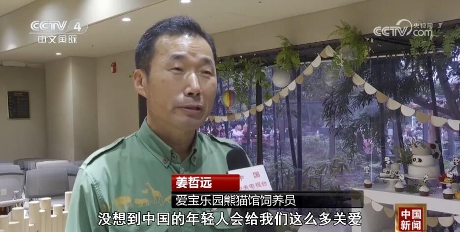 愛寶樂園熊貓館飼養(yǎng)員 姜哲遠(yuǎn):沒想到中國的年輕人會(huì)給我們這么多關(guān)愛,非常感謝也非常珍惜大家給我們的關(guān)注。我能做的事情其實(shí)就是像現(xiàn)在這樣,讓福寶繼續(xù)茁壯成長。