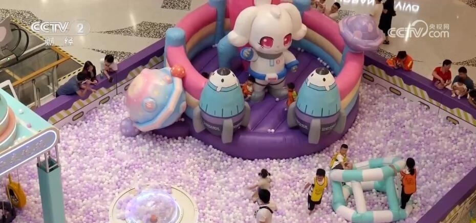 上海某商場運(yùn)營經(jīng)理 趙佳麗:我們會(huì)在暑假檔的時(shí)候,在中庭引入一些比較熱門的IP(知識產(chǎn)權(quán))游玩設(shè)施。另外,因?yàn)槿龢鞘莾和瘶I(yè)態(tài),所以全年都會(huì)安排一些固定的互動(dòng)點(diǎn)來供周邊的家庭游玩。