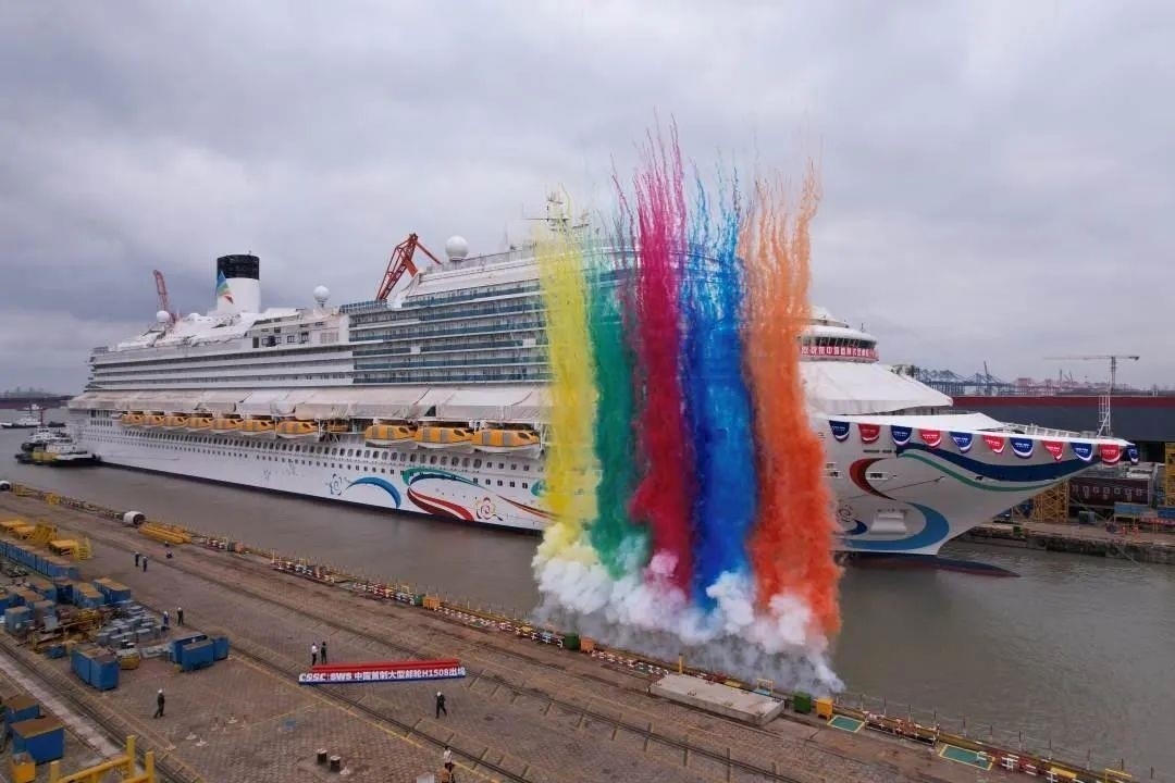 △2023年6月6日,首艘國產(chǎn)大型郵輪愛達 魔都號在上海外高橋造船廠完成塢內(nèi)系列試驗后正式出塢。