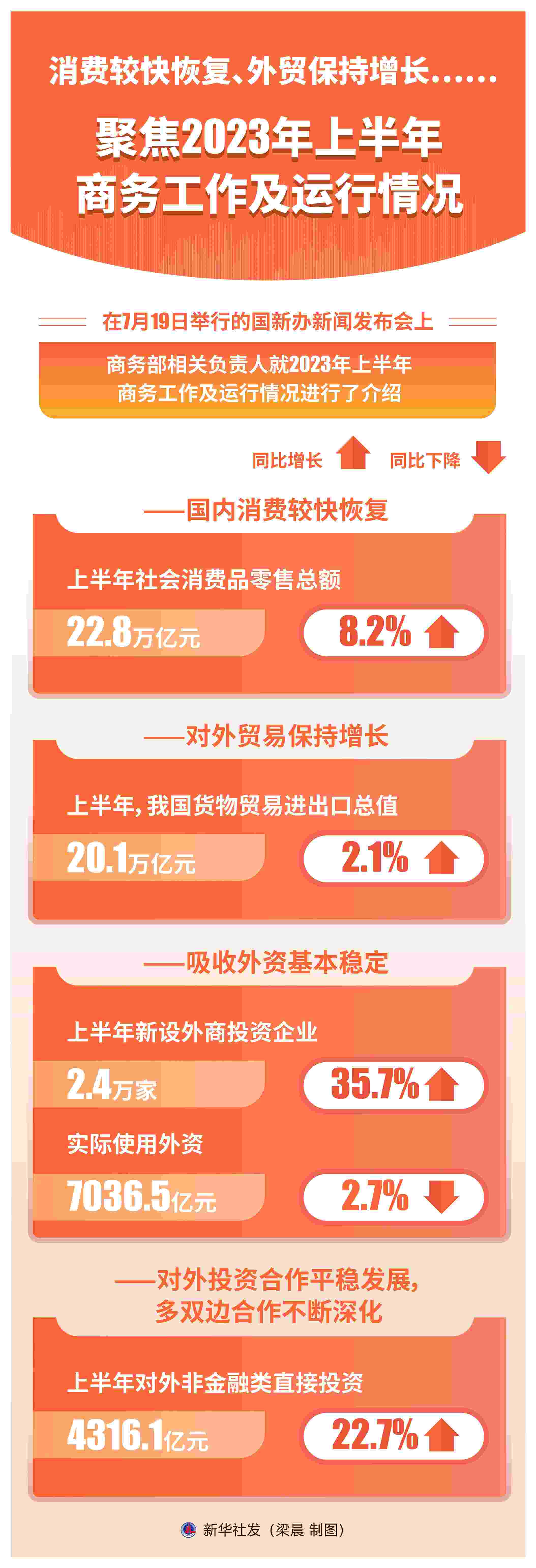 新華社北京7月19日電 題:消費(fèi)較快恢復(fù)、外貿(mào)保持增長……聚焦2023年上半年商務(wù)工作及運(yùn)行情況