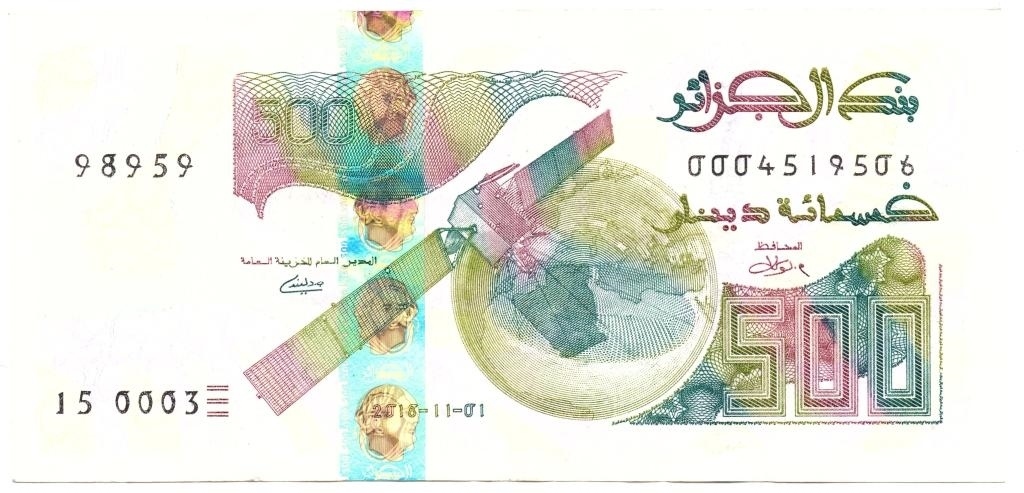 阿爾及利亞一號通信衛(wèi)星印在當(dāng)?shù)丶垘派稀?/span>