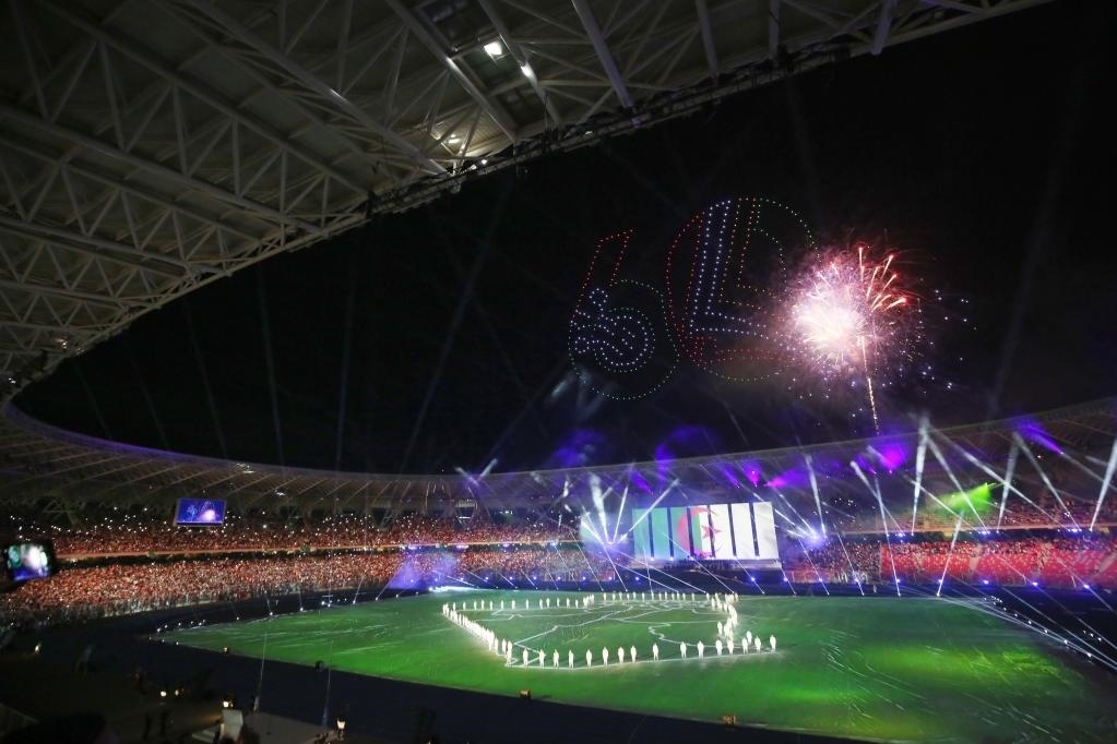 第19屆地中海運(yùn)動會開幕式在中國企業(yè)承建的阿爾及利亞奧蘭奧林匹克體育場舉行。