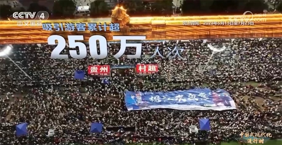 央視網(wǎng)消息:黨的二十大報(bào)告指出,中國式現(xiàn)代化是物質(zhì)文明和精神文明相協(xié)調(diào)的現(xiàn)代化。在廣大農(nóng)村地區(qū),農(nóng)民精神文化生活狀況是鄉(xiāng)村振興乃至經(jīng)濟(jì)社會(huì)發(fā)展全局的重要衡量指標(biāo)。近年來,“土味”十足的“村BA”“村超”等農(nóng)民自發(fā)舉行的體育賽事火爆全網(wǎng)。正在貴州榕江舉行的“村超”本周六(7月29日)將迎來總決賽,今天的系列節(jié)目《中國式現(xiàn)代化進(jìn)行時(shí)》,我們跟隨記者的鏡頭去看看“村超”的比賽盛況。