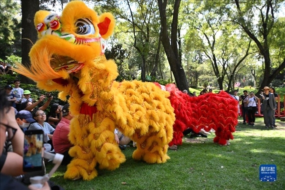 日前,“中墨共享一輪明月”中秋文化活動在墨西哥城舉辦?;顒又校瑏碜灾心珒蓢臄?shù)十組舞獅齊聚共舞,與當(dāng)?shù)孛癖姎g慶中秋佳節(jié)。