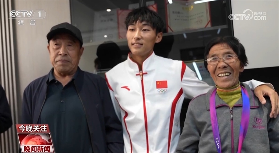 田徑比賽男子4×100米接力決賽中,第四棒陳佳鵬接棒時,中國隊(duì)稍微落后。憑借強(qiáng)大的后程加速能力,陳佳鵬在最后30米逆轉(zhuǎn)對手率先撞線,中國隊(duì)收獲金牌。奪冠后陳佳鵬回到老家,先后把金牌掛在了媽媽和奶奶的脖子上,合影時奶奶笑得合不攏嘴。