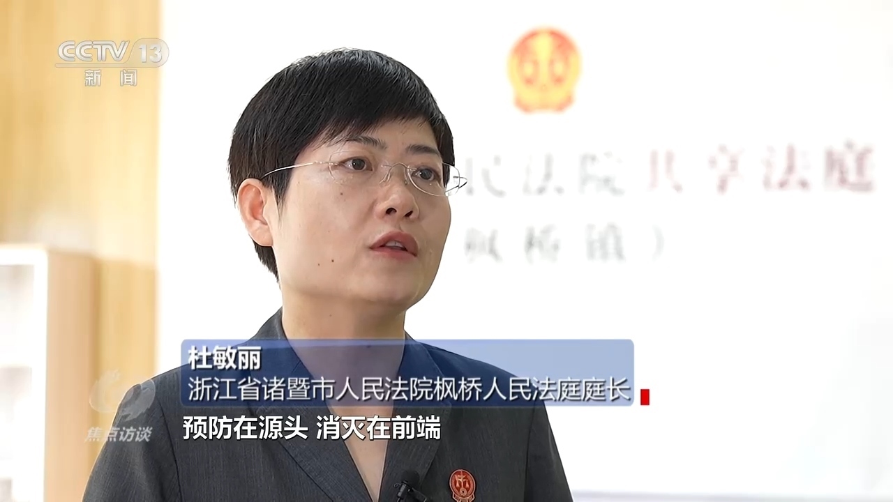 浙江省諸暨市人民法院楓橋人民法庭庭長杜敏麗:“把后端力量移到了前端,把更多矛盾糾紛預防在源頭、消滅在前端,后面的訴訟相當于案件量也慢慢減少?!?/p>