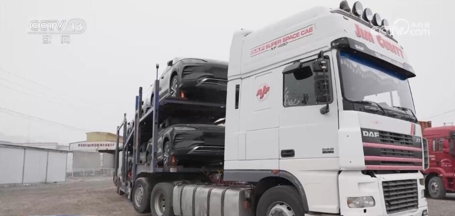 總臺記者 劉菲:在伊爾克什坦口岸的貨場里,我們看到很多輛像我身后這樣搭載著商品車的掛車,粗略地數(shù)一數(shù),一個小時的時間里,像這樣的車就是六七輛。今年以來,在南疆的公路口岸中,伊爾克什坦口岸出口的商品車數(shù)量居于首位。?