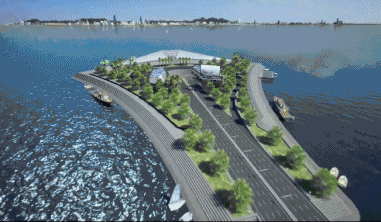 西人工島面積約13.7萬平方米、相當于19個足球場,從空中俯瞰,就像一只鯤鵬,展翅在伶仃洋海面上。這里也是深中通道橋隧轉(zhuǎn)換的關(guān)鍵構(gòu)造,從這里開始,深中通道開始了全長6845米的海底隧道部分,未來汽車將從這里駛向海平面之下,最深的地方將會在海平面之下39米的沉管隧道中行駛。