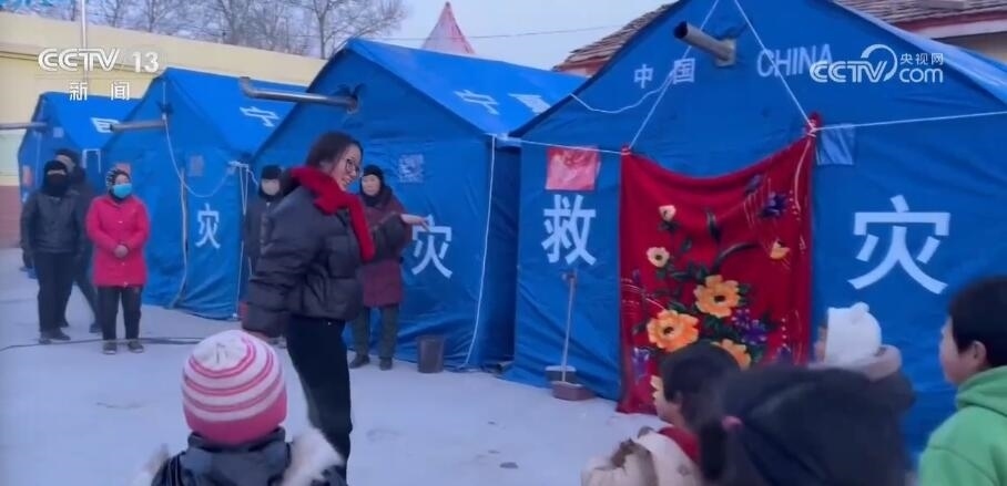 總臺記者 馬麗:我現(xiàn)在是在積石山縣前嶺小學(xué)附屬幼兒園。目前,這里也是前嶺村的一個集中安置點。地震發(fā)生后,這里的主體校舍沒有明顯受損,并且校內(nèi)廣場有大面積的空地,所以被作為了臨時安置點,來安置附近的40余名村民。其中,有近30名是小學(xué)生和幼兒園的小朋友。他們有些是村民自己的孩子,有些是附近親戚家的孩子??紤]到這里的環(huán)境更加穩(wěn)定和保暖,孩子們也被聚集到了這里。現(xiàn)在,正是早起的時間,在安置點也升起了裊裊炊煙,陽光從遠處照了過來。