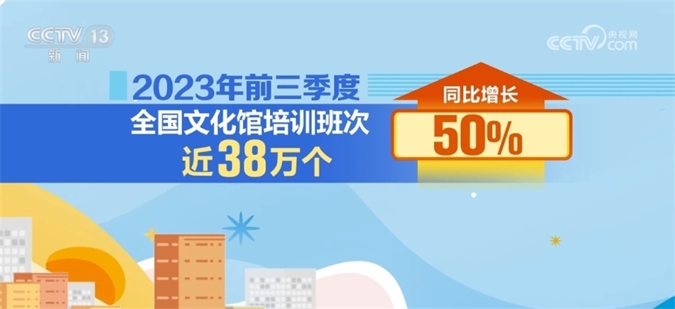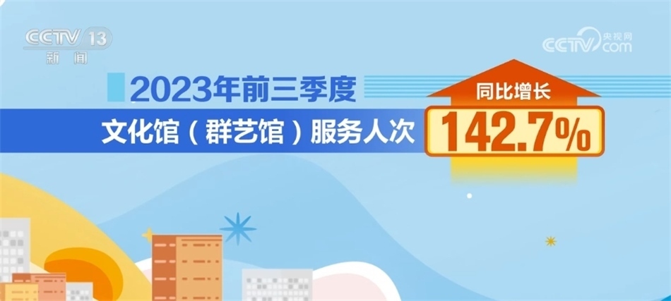 據(jù)統(tǒng)計(jì),2023年前三季度公共圖書館總流通人次同比增長(zhǎng)55.2%;2023年前三季度,全國(guó)文化館培訓(xùn)班次近38萬(wàn)個(gè),同比增長(zhǎng)50%;文化館(群藝館)服務(wù)人次同比增長(zhǎng)142.7%。