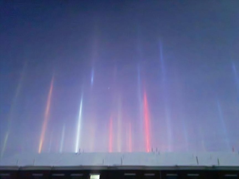 內(nèi)蒙古額爾古納市出現(xiàn)“光柱”奇觀,如夢似幻。據(jù)悉,“光柱”現(xiàn)象是由于極寒天氣空氣中的冰晶反射燈光形成的自然奇觀。