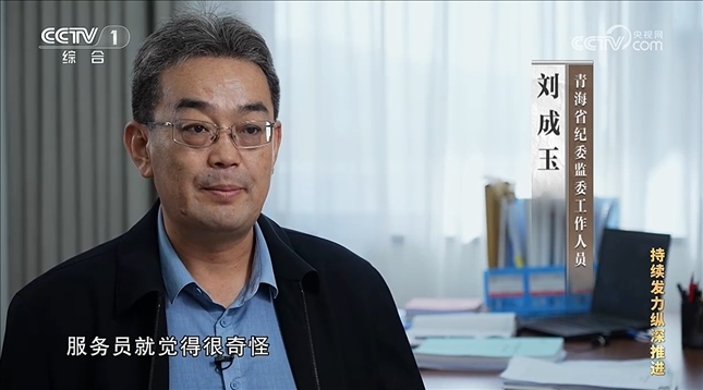 竇閩(中央紀委國家監(jiān)委機關(guān)工作人員):中央紀委國家監(jiān)委始終把落實中央八項規(guī)定精神作為監(jiān)督執(zhí)紀的底線性任務(wù),決不允許以高原地區(qū)喝酒驅(qū)寒為違規(guī)吃喝找借口,決不允許以鄉(xiāng)黨文化根深蒂固為喝酒聚餐找理由。查辦案件過程中,我們堅持與以案促改促治同謀劃、同部署、同推進,指導(dǎo)青海省委、省紀委監(jiān)委在全省開展專項教育整治,推動中央八項規(guī)定精神在高原大地落地生根。