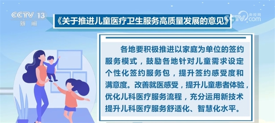 《意見》要求,各地要積極推進(jìn)以家庭為單位的簽約服務(wù)模式,鼓勵各地針對兒童需求設(shè)定個性化簽約服務(wù)包,提升簽約感受度和滿意度。改善就醫(yī)感受,提升兒童患者體驗(yàn),優(yōu)化兒科醫(yī)療服務(wù)流程,充分運(yùn)用新技術(shù)提升兒科醫(yī)療服務(wù)舒適化、智慧化水平。