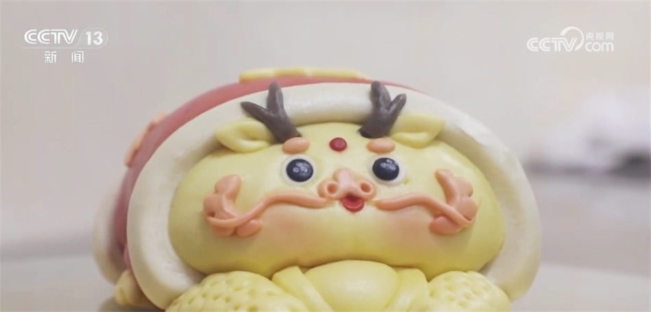 蒸年饃是山西霍州的傳統(tǒng)年俗之一,普通的面團(tuán)經(jīng)過精心設(shè)計(jì)和巧手揉捏,變成一個(gè)個(gè)有著吉祥寓意、造型獨(dú)特的面塑藝術(shù)。今年,以“龍?jiān)亍睘橹黝}的花饃更是蒸出了熱騰騰的年味兒。