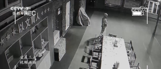 放置在哨樓的攝像機,在凌晨兩點多的時候記錄了新兵們第一次執(zhí)勤時的狀態(tài)。