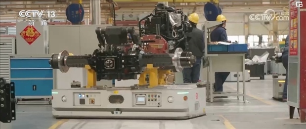 這是一部自動(dòng)化的AGV轉(zhuǎn)運(yùn)小車,也叫做自動(dòng)搬運(yùn)機(jī)器人,它搬運(yùn)的可不是小零件,而是拖拉機(jī)底盤。這個(gè)環(huán)節(jié)如果靠人工轉(zhuǎn)運(yùn),費(fèi)時(shí)又費(fèi)力,如今在它的幫助下,幾秒鐘就可以完成。