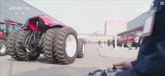 在這個(gè)數(shù)字項(xiàng)目區(qū),拖拉機(jī)生產(chǎn)的幾十道工序都在不斷優(yōu)化創(chuàng)新。這個(gè)沒有駕駛艙,更沒有駕駛員的拖拉機(jī)可以自由行走,指揮它行動(dòng)的是一部手持操作面板,這是中國(guó)一拖新上線的無人駕駛拖拉機(jī)。