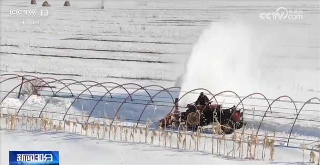 在黑龍江哈爾濱市延壽縣,種植戶正在搶抓天氣回暖有利時(shí)機(jī)開展清雪扣棚工作。