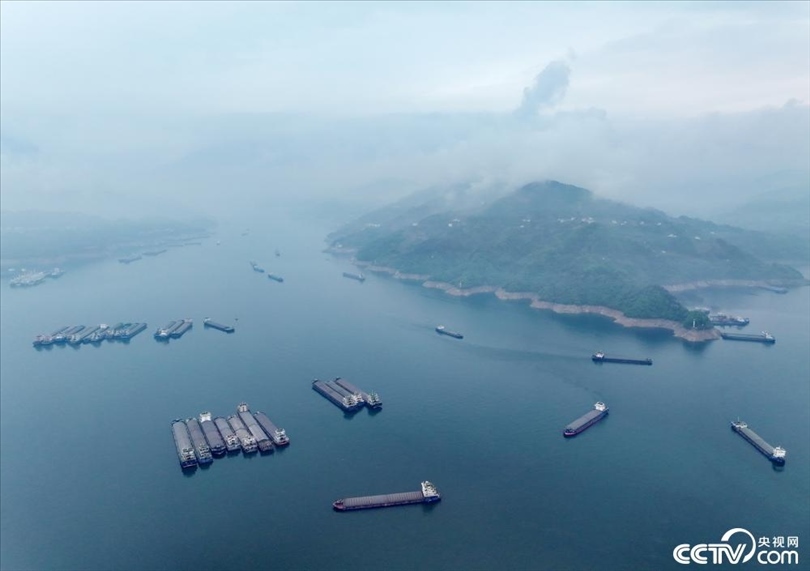 2024年4月10日,湖北宜昌,一場(chǎng)春雨過(guò)后,秭歸縣峽江兩岸煙雨朦朧,船行其間,宛如一幅水墨畫卷。