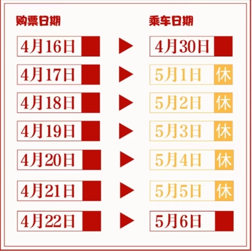 ·“五一”假期火車票4月17日開始發(fā)售。