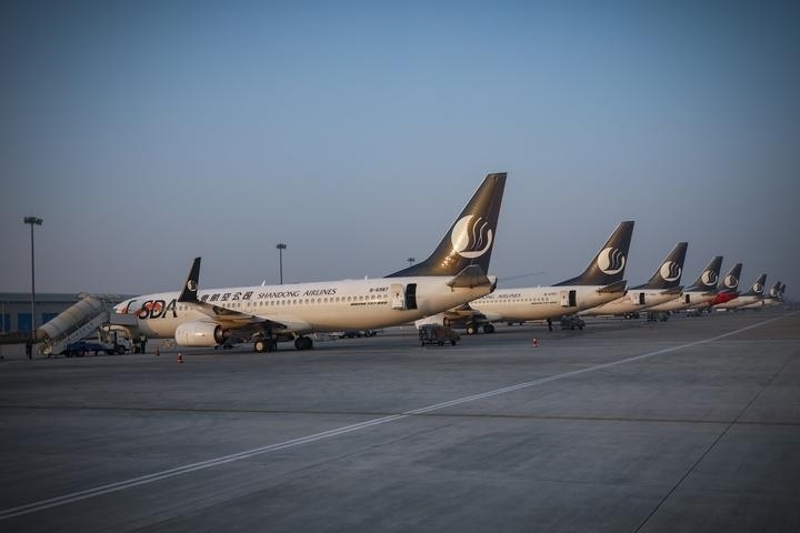圖為山東航空在機(jī)場(chǎng)??康娘w機(jī)。(山東航空供圖)