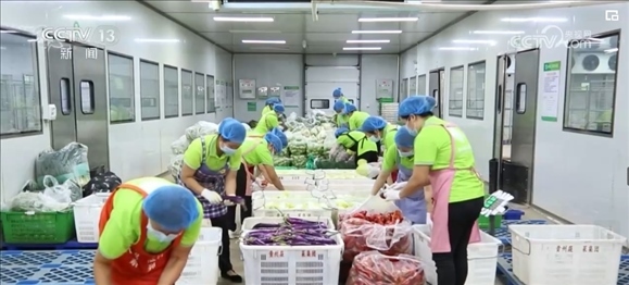 在貴州興義一個(gè)蔬菜分揀中心,工作人員正把40多種蔬菜按將照訂單進(jìn)行分揀、裝箱、運(yùn)送,確保頭一天下午采摘的新鮮蔬菜,第二天就能進(jìn)入惠民生鮮超市、農(nóng)貿(mào)市場(chǎng)和社區(qū)菜店。