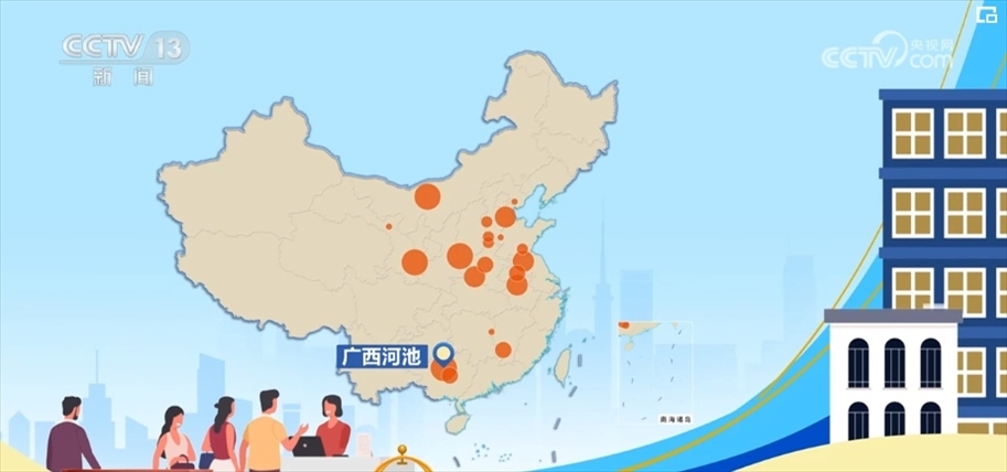 大家都去哪兒了?通過分析平臺上335個目的地的同比增幅數(shù)據(jù)后,找到了2024年“五一”最受歡迎的小眾旅游目的地。在這張熱力圖上,標注的是增幅前20的小眾目的地城市,圓圈大小表示增幅的高低,排名第一的廣西河池的酒店和票務(wù)預(yù)訂同比增長近四倍,而分布在10個不同省份的這20個城市,同比增幅都在一倍以上。