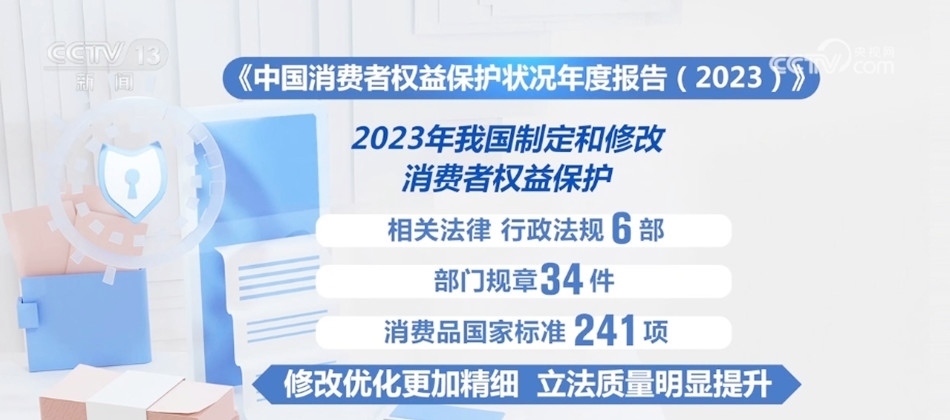 年度報(bào)告顯示,2023年我國(guó)制定和修改了消費(fèi)者權(quán)益保護(hù)相關(guān)法律、行政法規(guī)6部、部門(mén)規(guī)章34件、消費(fèi)品國(guó)家標(biāo)準(zhǔn)241項(xiàng),修改優(yōu)化更加精細(xì),立法質(zhì)量明顯提升。