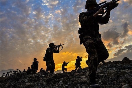 ▲ “強(qiáng)軍精武紅四連”官兵在陌生地域開展戰(zhàn)場搜索訓(xùn)練。