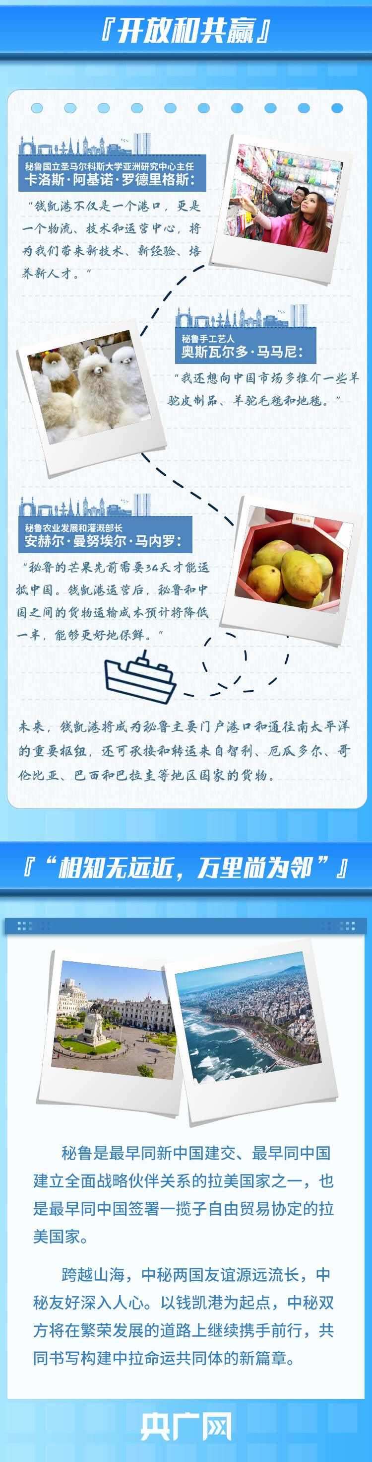 錢凱港位于秘魯首都利馬以北80公里,是中秘共建“一帶一路”重點項目。開港后,中秘間單程海運時間將縮短至23天,節(jié)約20%以上的物流成本,每年將為秘魯創(chuàng)造逾8000個直接就業(yè)機(jī)會。