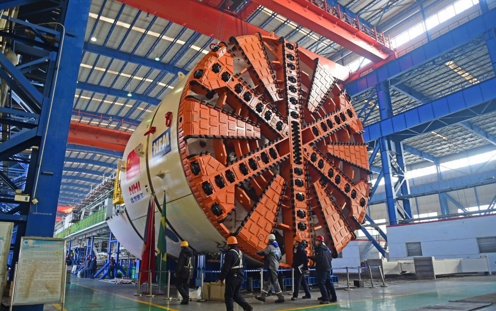 這是在遼寧沈陽北方重工集團拍攝的即將出口到巴西圣保羅的盾構(gòu)機(2016年1月28日攝)。