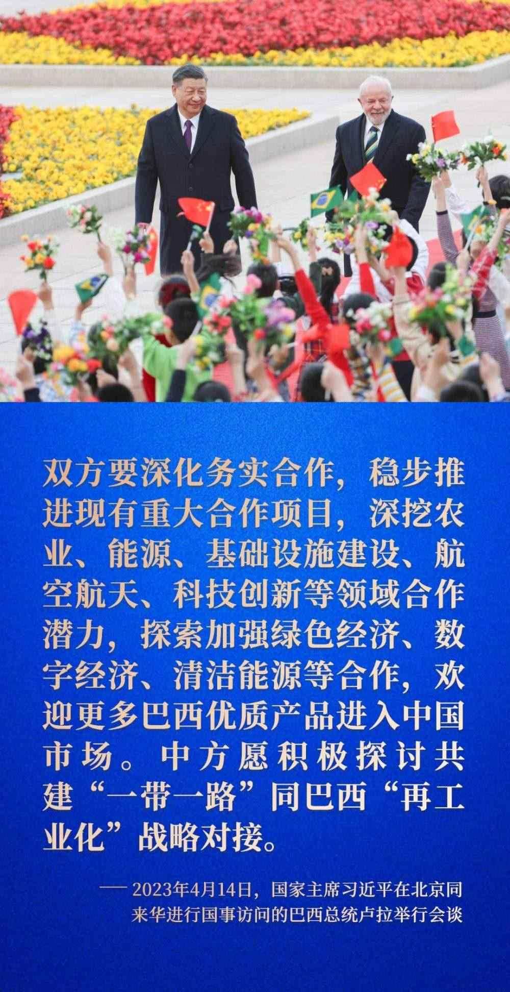 中國和巴西同為發(fā)展中大國和重要新興市場國家,互為全面戰(zhàn)略伙伴。習近平主席用“發(fā)展中大國關(guān)系典范”描述中巴關(guān)系,并多次談到兩國要深化務(wù)實合作,促進共同發(fā)展。
