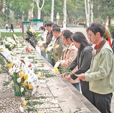 4月4日清明節(jié),湖北武漢江漢大學(xué)的師生自發(fā)前往武漢市解放公園,緬懷為阻擊日寇而英勇?tīng)奚奶K聯(lián)援華航空隊(duì)烈士。