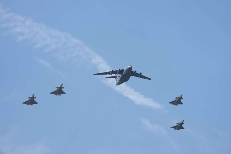 9月12日,第十二批在韓中國人民志愿軍烈士遺骸回國。這是為接運烈士遺骸回國的運-20專機伴飛護航的殲-20飛機。