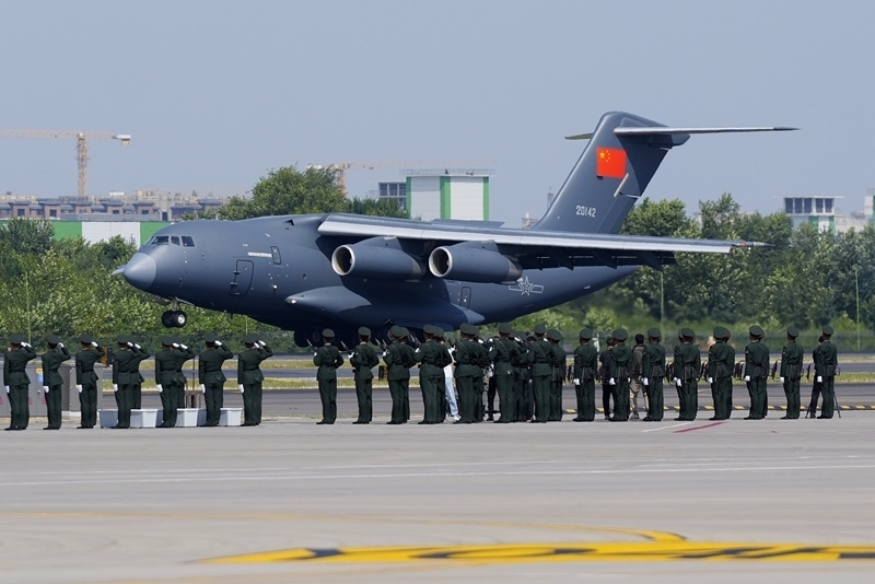 9月12日,第十二批在韓中國人民志愿軍烈士遺骸回國。這是接運烈士遺骸回國的運-20飛機降落在沈陽桃仙國際機場。