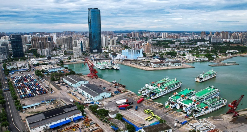 7月22日,裝載完成后的客滾船駛離??谑行阌⒏郏o人機(jī)照片)。