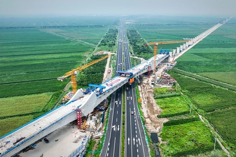 8月9日凌晨,由中鐵十四局承建的津?yàn)H高鐵東壽特大橋跨榮烏高速連續(xù)梁成功合龍。該連續(xù)梁位于山東壽光,是津?yàn)H高鐵山東段最大跨度連續(xù)梁,主跨長168米。