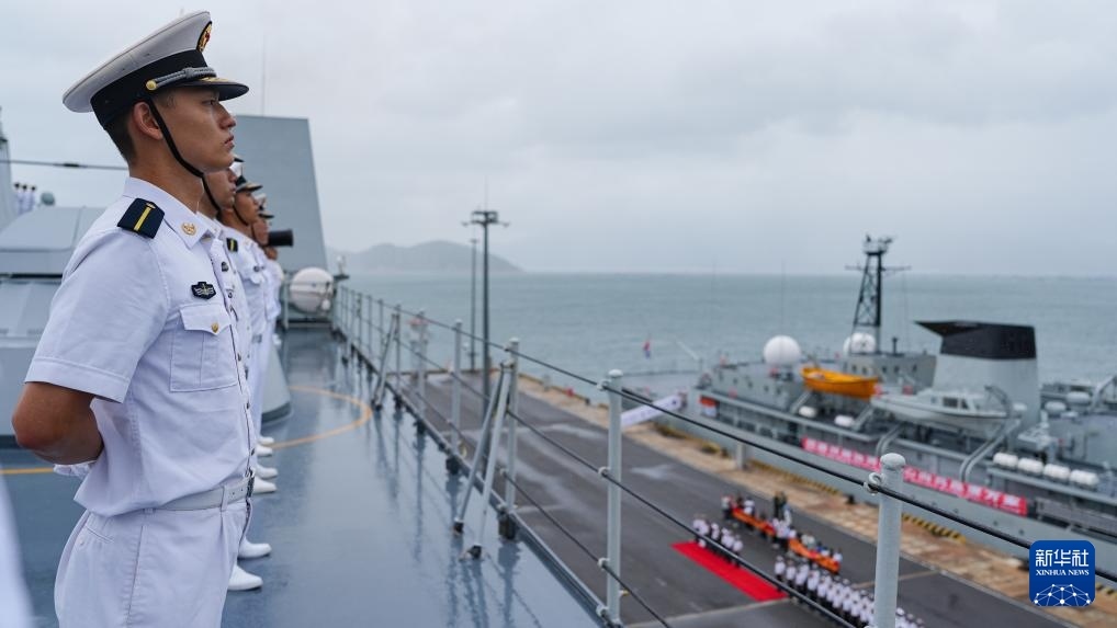 11月25日,中國海軍989編隊結束對越南為期4天的友好訪問,從越南金蘭港起程前往馬來西亞。這是官兵分區(qū)列隊。新華社發(fā)(王磊攝)