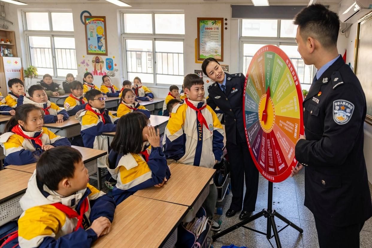 12月2日,安徽省舒城縣公安局網監(jiān)大隊聯合五顯派出所走進五顯鎮(zhèn)中心學校課堂,為同學們帶來了一堂沉浸式、互動式的法治教育課。(工人日報通訊員 王可海 攝)